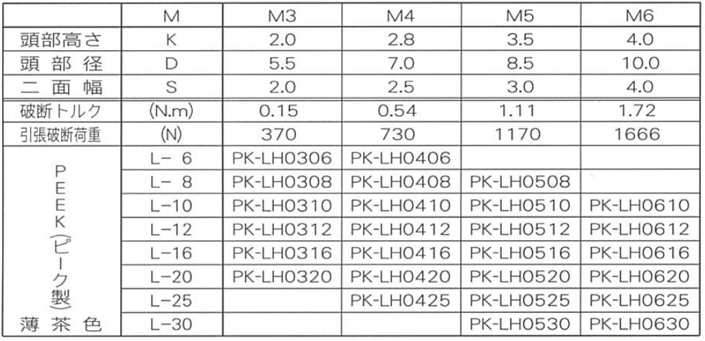 Bu lông 6 cạnh chìm đầu mỏng (Nhựa Peek) (PK-LH)
